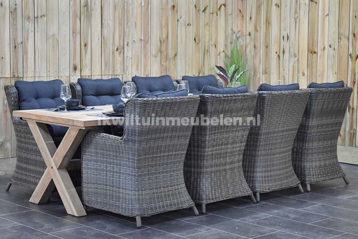 Norwich Tafel 300 Teak Natural met 8 Delano Dining Tuinstoelen Kobo Grey