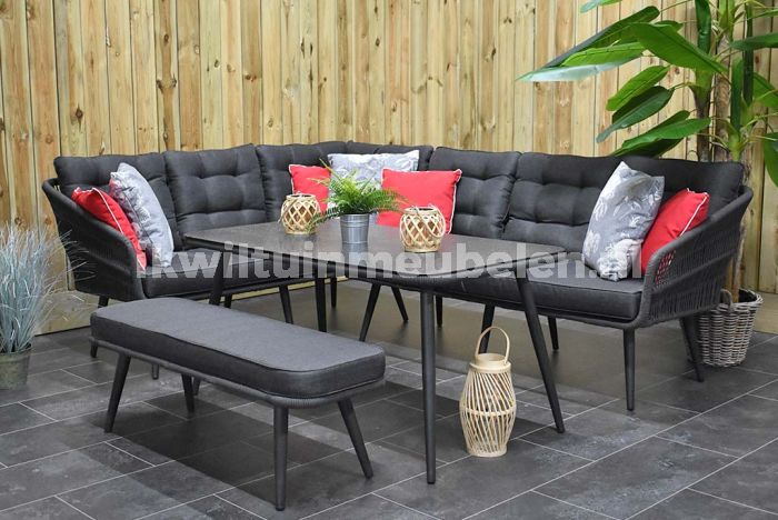 Positano Rope Loungeset Hoekbank Hoge Tafel Spraystone met Bankje Antracite