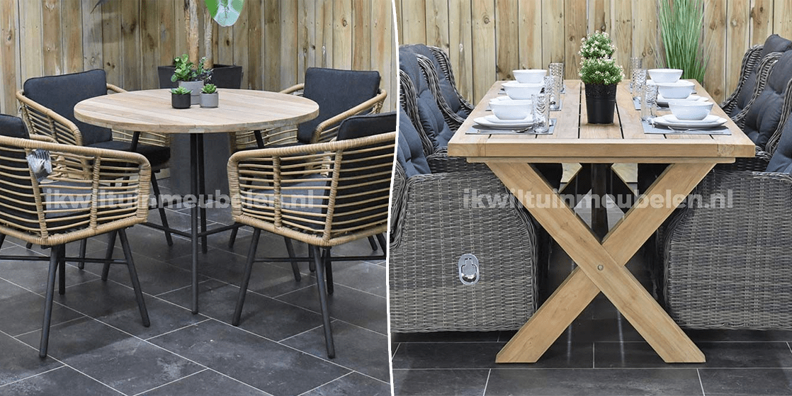 Voel jij je helemaal thuis te midden van natuurlijke materialen, dan zal de teakhouten tuinset perfect passen bij jouw smaak. De warme uitstraling en levendige structuur van het teak komen prachtig tot hun recht in een tuin waar een botanische of landelijke stijl centraal staat. Vooral in combinatie met een aantal houten tuinstoelen weet je de natuurlijke stijl te versterken.